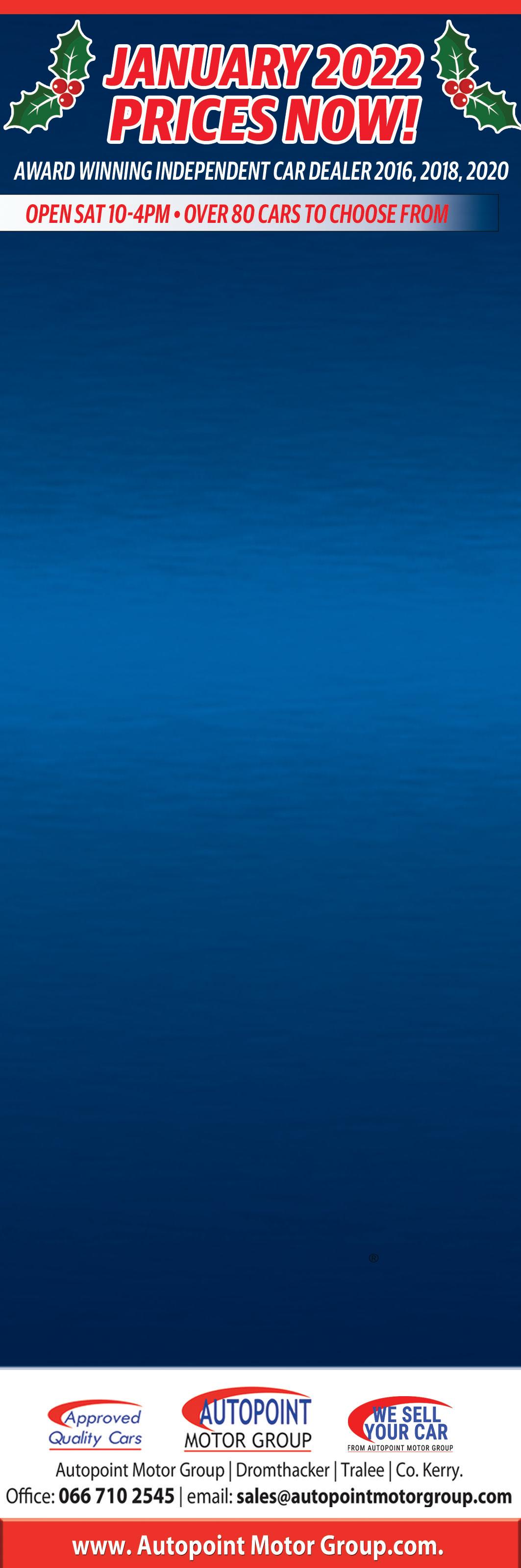 Autopoint Motor Group is a national multi-award winning inde pendent car dealer based in Tralee that is passionate about the motor business.INDUSTRY LEADERS: Autopoint sales team John Dillon (Sales Director) and Ken Wheeler (Sales Executive) at their Tralee premises.