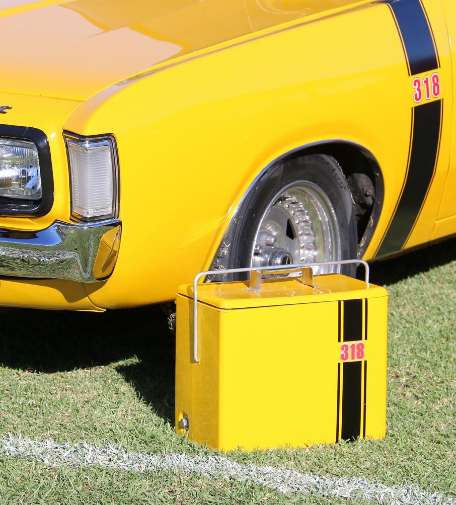 The original small block that was in the HG suffered a major meltdown during its final burnout appearance when several pistons decided to take a leave of absence through the side of the block. A new, 427cube small block was ordered through well-known engine man John Sawka, who fitted a solid roller cam, AFR heads and an NOS direct port nitrous kit. The previous tunnel ram has been replaced by a single dominator and intake and