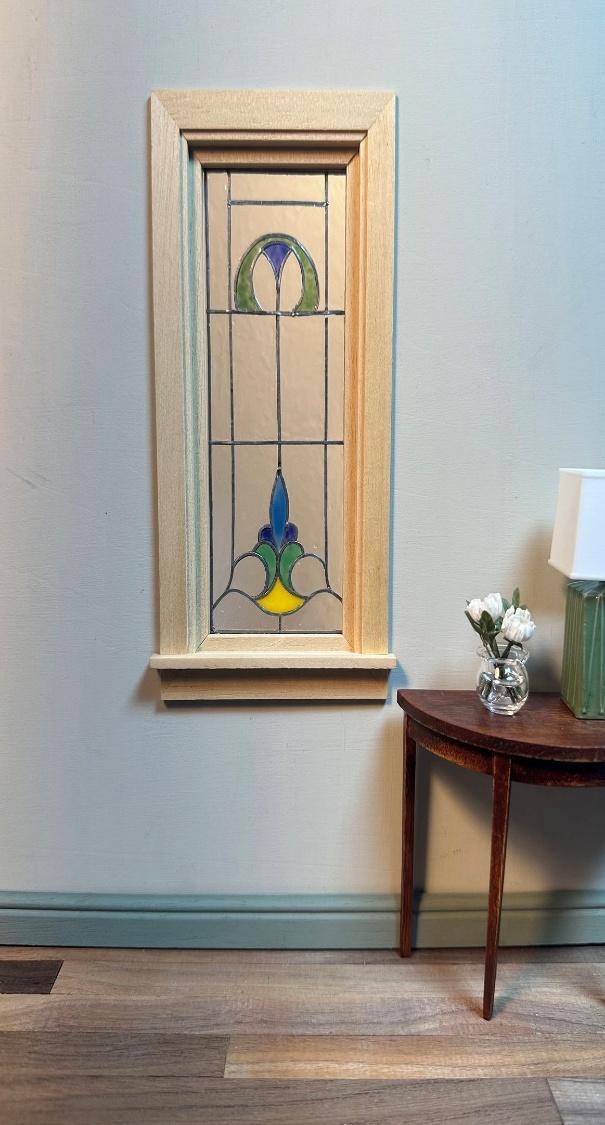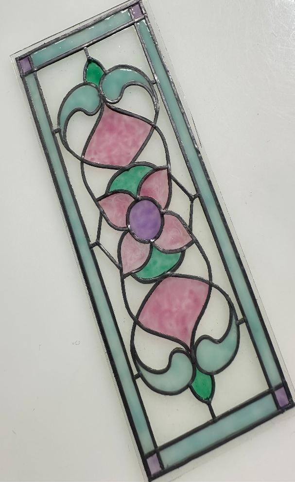In this class, students will learn the art of creating a miniature-stained glass piece. Participants can choose from two unique designs and will receive a plexiglass panel as their base. The class will cover essential techniques, including lead cutting, lead application, and basic glazing methods. I will provide materials and all tools needed for the workshop. Students will be given the tools as a gift to take home. You are welcome to bring your own tweezers utility knife or cutting mat if you would like. Lighting and magnification are suggested. Window frame pictures is not included. The finished size is approximately: 2” x 5”