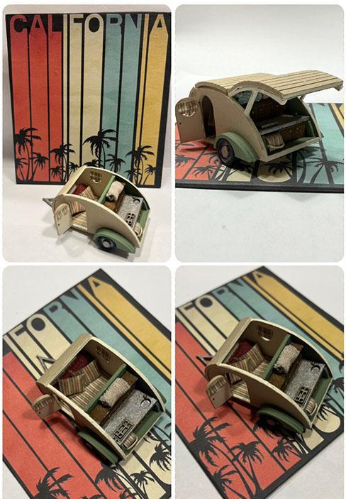 Come along to create your freedom to travel in a quarter scale retro teardrop trailer. Dream of California sunshine while assembling, painting and accessorizing our laser-cut MDF kit. Plan your miniature road trip while experimenting with paint colors, fabrics and tips on accessories. We’ll be there to guide you “off grid” to complete your “Kozy Escape.” The finished size is approximately: 2.75”L x 1.96”H x 1.18D