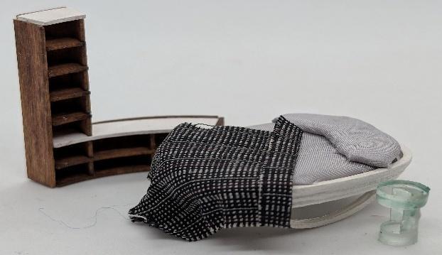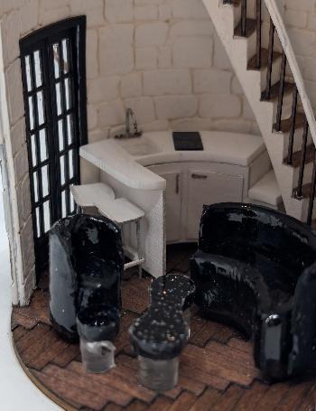 This living room is a replica of one featured in a very popular sitcom that aired in the mid 80’s to the early 90’s. The beginning of the class will be spent primarily on making one of the bamboo chairs and one of the tables, so you have the knowledge and practice to make the other wicker pieces at home. We will also start working on the back so you will see the technique for the beams and fireplace. We will work on the ceiling fan and table lamp to the extent that they can be finished at home. We will not be able to finish this workshop in one day. Know that once you are home, I am always available to answer questions and give you help. Frame may be different based on availability. The 3D printed lovely ladies that lived in this house will be available in 1:48 scale from Alician Pierce, Blackthorne Miniatures, for purchase in the salesroom during the convention. The size is approximately 5.5"W x 3-3/4”D x 3-1/8"H (without frame).