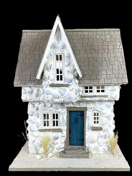 Imagine a charming little cottage by the sea, its exterior covered in shells. This delightful two-story cottage embodies rustic charm and creative expression. The cottage stands out with its exterior, featuring a selection of natural shells carefully arranged to give each cottage a one-of-a-kind look. Heavy wood sills reinforce the cottage’s sturdy appearance, while a detailed, welcoming door beckons visitors inside. The interior continues the rustic theme. The walls are constructed with precut timbers, and the spaces between these timbers feature plaster embedded with shells. Students will lay wood floors throughout the interior, infusing the project with even more warmth and texture. Creativity is at the heart of this project. The student’s hands-on work doesn’t just shape the cottage; it lets them leave a little piece of themselves in every corner, making each house truly special. The finished size is approximately: 5-3/4”L x 5”D x 6-1/4”H