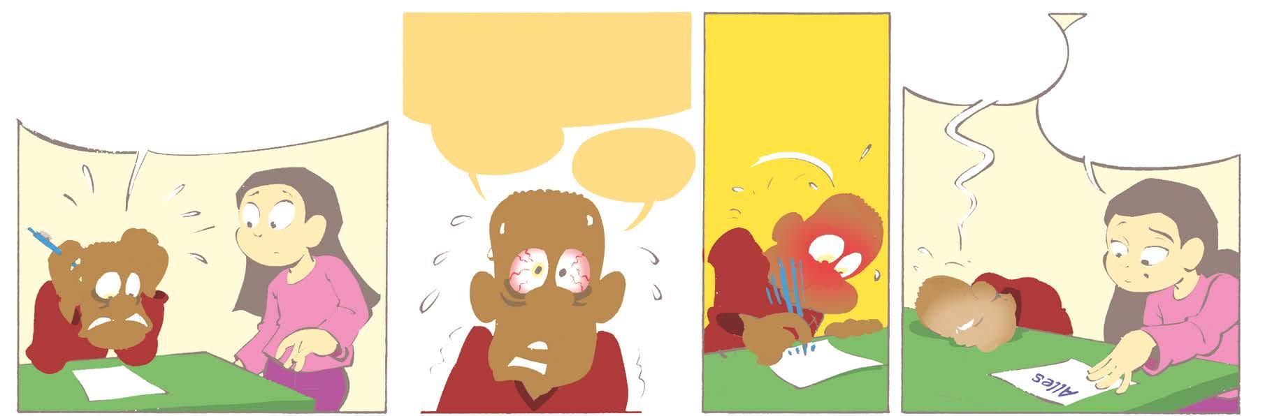 Brandon: ‘Als we met mooi weer in het bos zijn, dan bouw ik met mijn broer een hut. Ik vind het best wel leuk om in de natuur te zijn, alleen als het warm is niet. Er komen dan wespen en bijen. Ik ben een keer gestoken. Ik wil wegrennen als ik een wesp zie, maar dan komt hij achter me aan. Ik moet eigenlijk stil blijven staan. Als ik in de natuur loop en met iemand aan het praten ben, dan vergeet ik de wespen en bijen wel.’