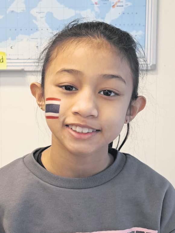 ‘Ik ben geboren in Thailand, maar ik heb 7 jaar in Maleisië gewoond. Daarna gingen we naar Qatar. Ik ging daar naar een Engelse school. Ik spreek thuis met mijn zusje en ouders Engels en Thais. Engels vind ik de leukste taal. Ik lees nu een Engels boek dat gaat over kinderen die verliefd worden. Op school leer ik Nederlands. Ik vind het leuk om meer talen te spreken, want als ik over de wereld reis kan ik met mensen uit verschillende landen praten.’