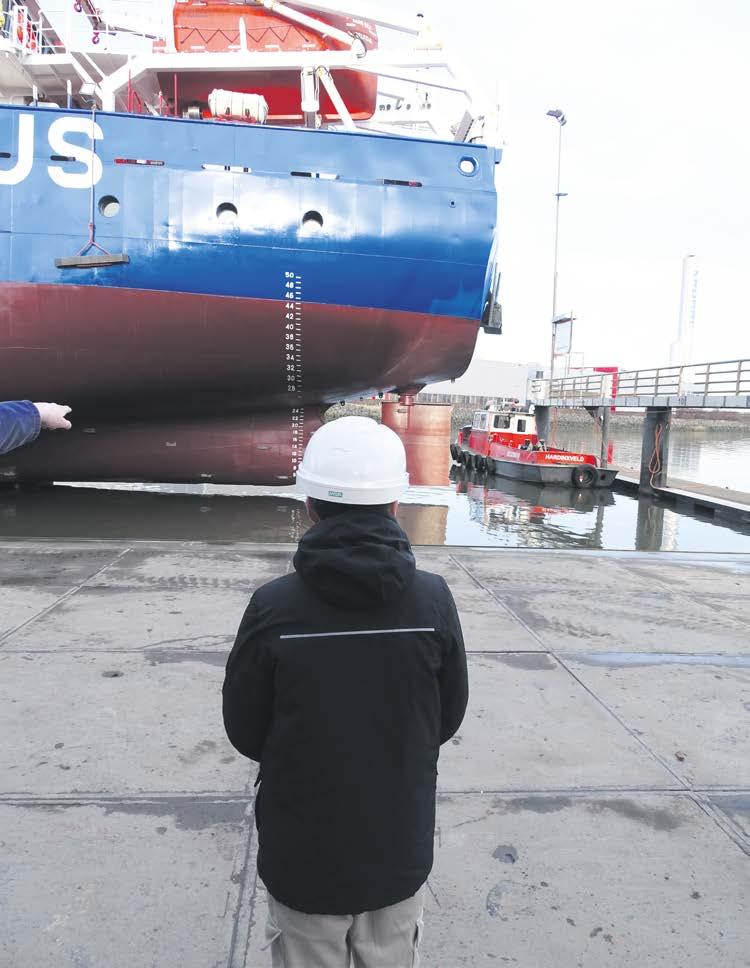 DORDRECHT – Bobbi (10) mocht deze winter een kijkje nemen bij de scheepswerf van Kooiman Marine Group in Dordrecht. Bobbi: ‘Ik was nog nooit eerder op een scheepswerf geweest. Het is hier heel anders dan ik dacht. Ik dacht dat alles veel kleiner zou zijn, de schepen en het terrein.’ Bobbi kreeg uitleg over hoe schepen uit het water gehaald worden voor onderhoud en reparatie. En hoe de schepen daarna weer terug het water in gaan. TEKST EN FOTO’S: LINDA TE VELDHUIS