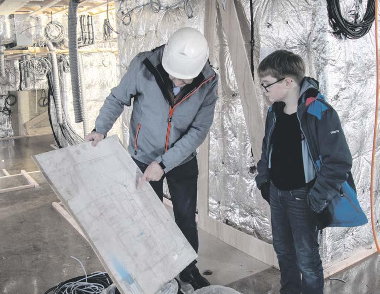 gezien. Deze zijn voor alle apparatuur daar, zoals lampen, de radar en waarmee je straks stuurt’, zegt Sylvijn. Als de stuurhut klaar is, kun je deze kabels niet meer zien.