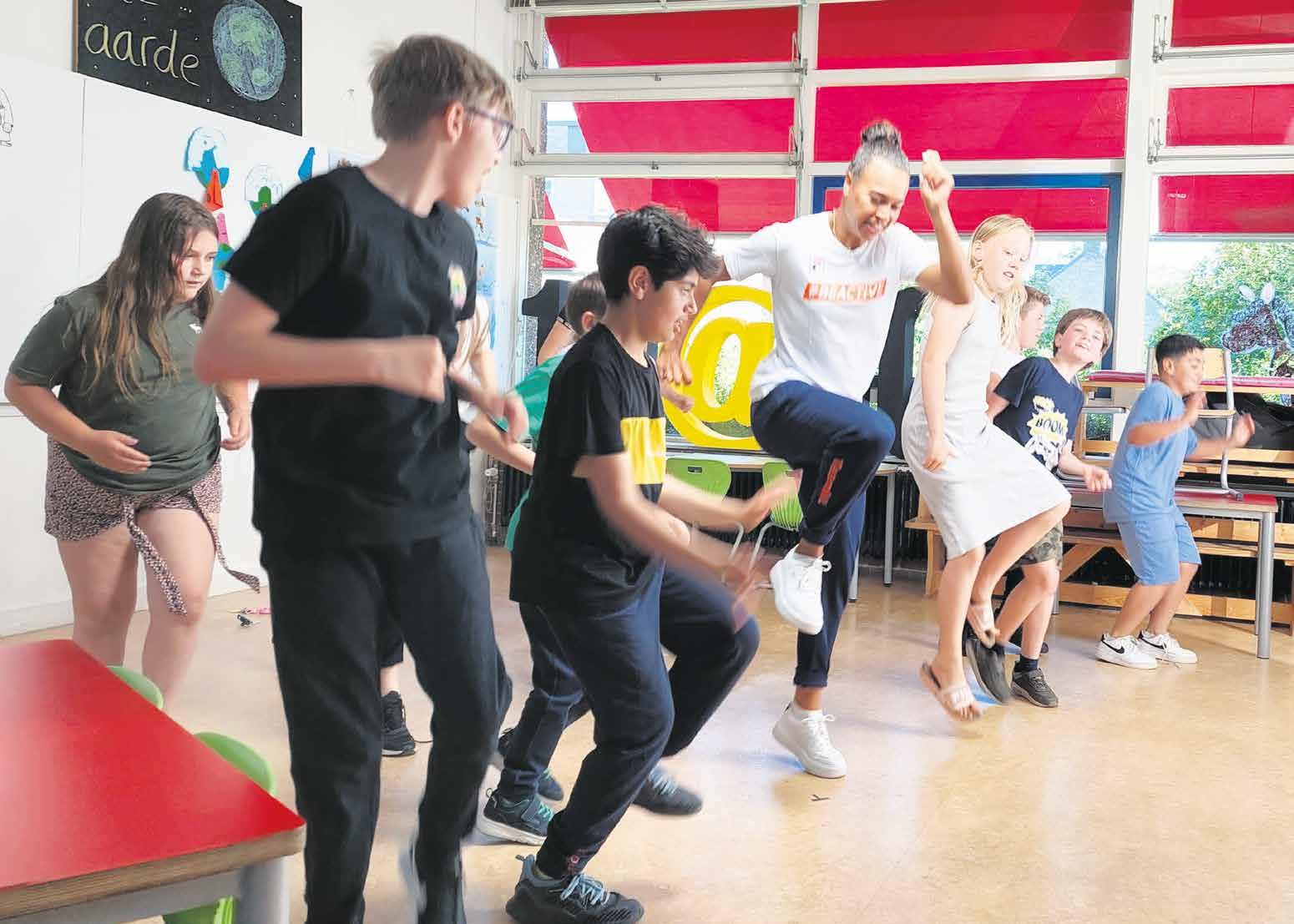 ‘De opnames worden geëdit’, zegt Kayleigh. ‘Als het filmpje daarna klaar is, wordt het op YouTube gezet. Zo kunnen kinderen op andere scholen het filmpje bekijken en meedoen met de challenge’, vertelt Büsra.