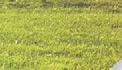 Sechs Trinkgläser stehen in einer Reihe. Die drei linken sind mit Limo gefüllt, die drei rechten sind leer.
