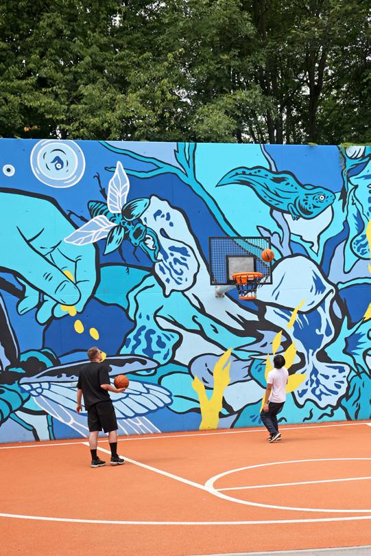Jahrelang wurde in Berg am Laim gebaut, nun laden vier Aktionsflächen im Grünen zum Spielen ein. Dazu gehören ein Pumptrack, ein Basketballfeld und ein Spielplatz samt Kletteranlage und rollstuhlgerechtem Wasserspielplatz.
