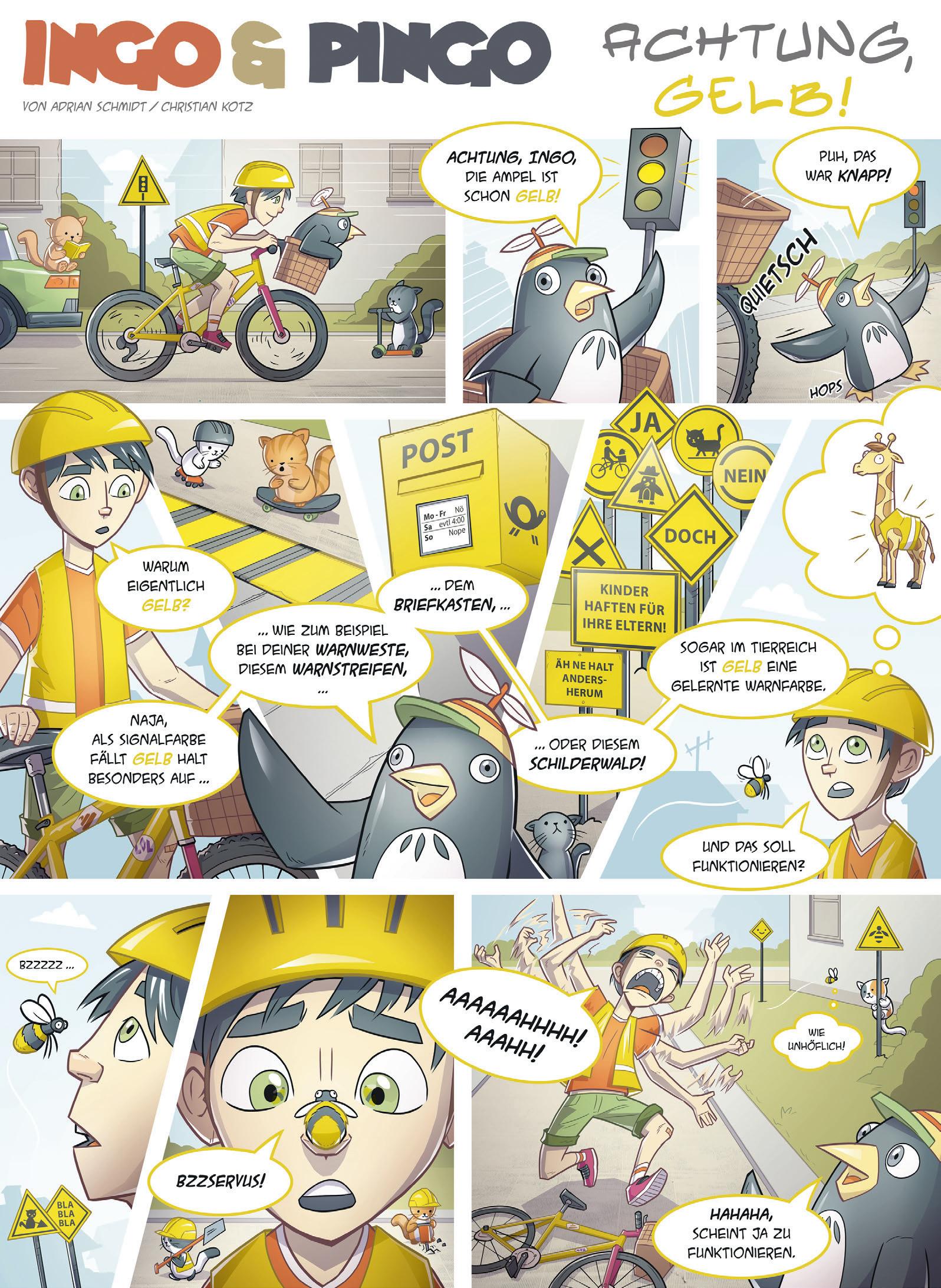 Comic mit Ingo und Pingo: Achtung, Gelb!
