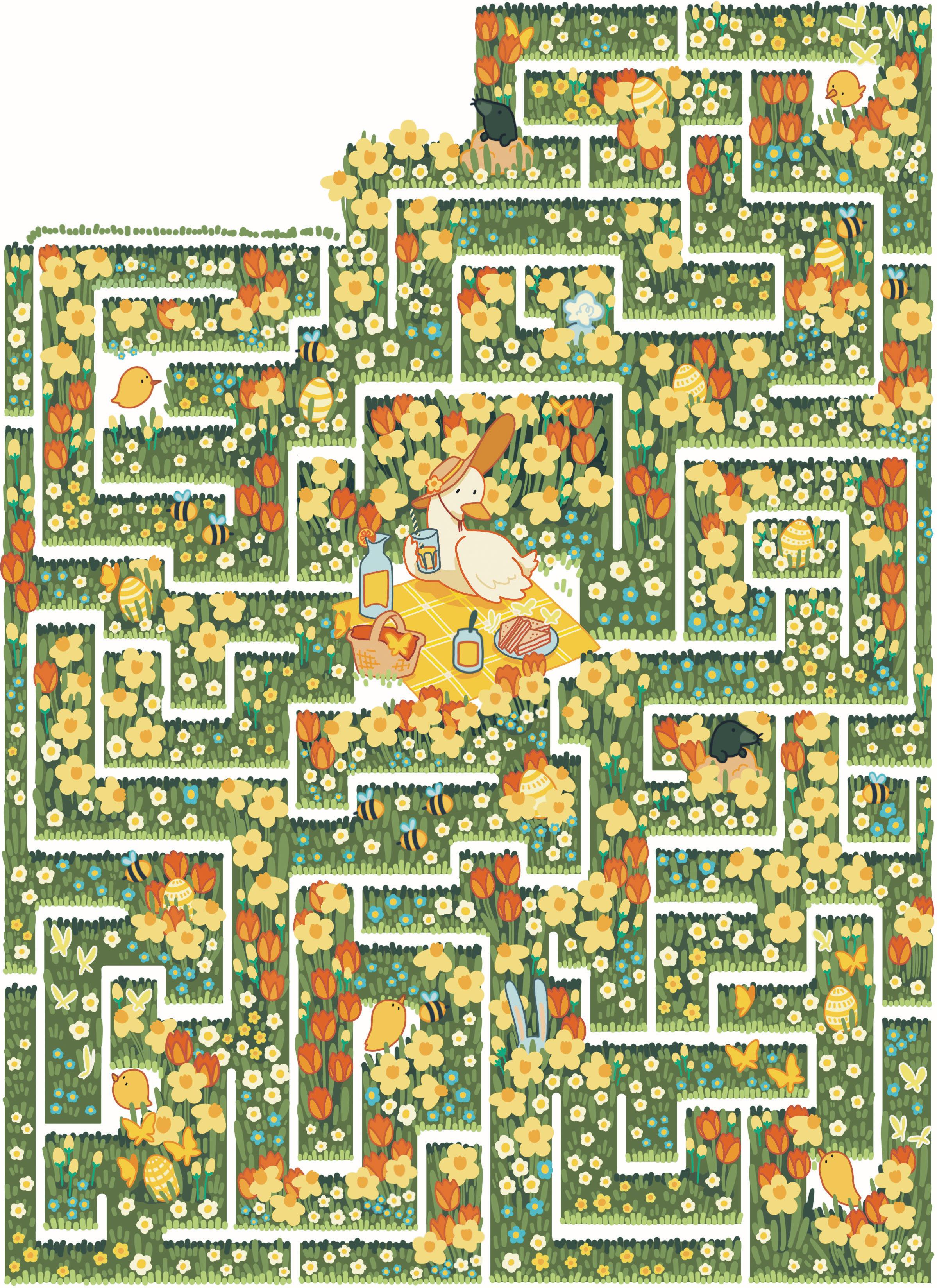 Ei, ei, ei! Die Küken haben sich auf der Suche nach Ostereiern verlaufen! Hilf ihnen, alle Eier zu finden, und führe sie zur Picknickdecke zurück. Schließlich wartet ihre Mama schon! So geht’s: Umkreise mit einem Stift alle 10 Eier und zeichne die richtigen Wege zwischen Küken und Mama Henne ein. Findest du weitere Tiere, sogar den Osterhasen?