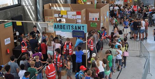 In den Sommerferien betreiben Kinder ihre eigene Stadt: Sie arbeiten und studieren dort, flanieren oder fahren Bus, bauen, konsumieren, gehen ins Kino oder Theater, eröffnen Geschäfte, machen Politik und haben jede Menge Spaß. Mehr dazu auf Seite 31!