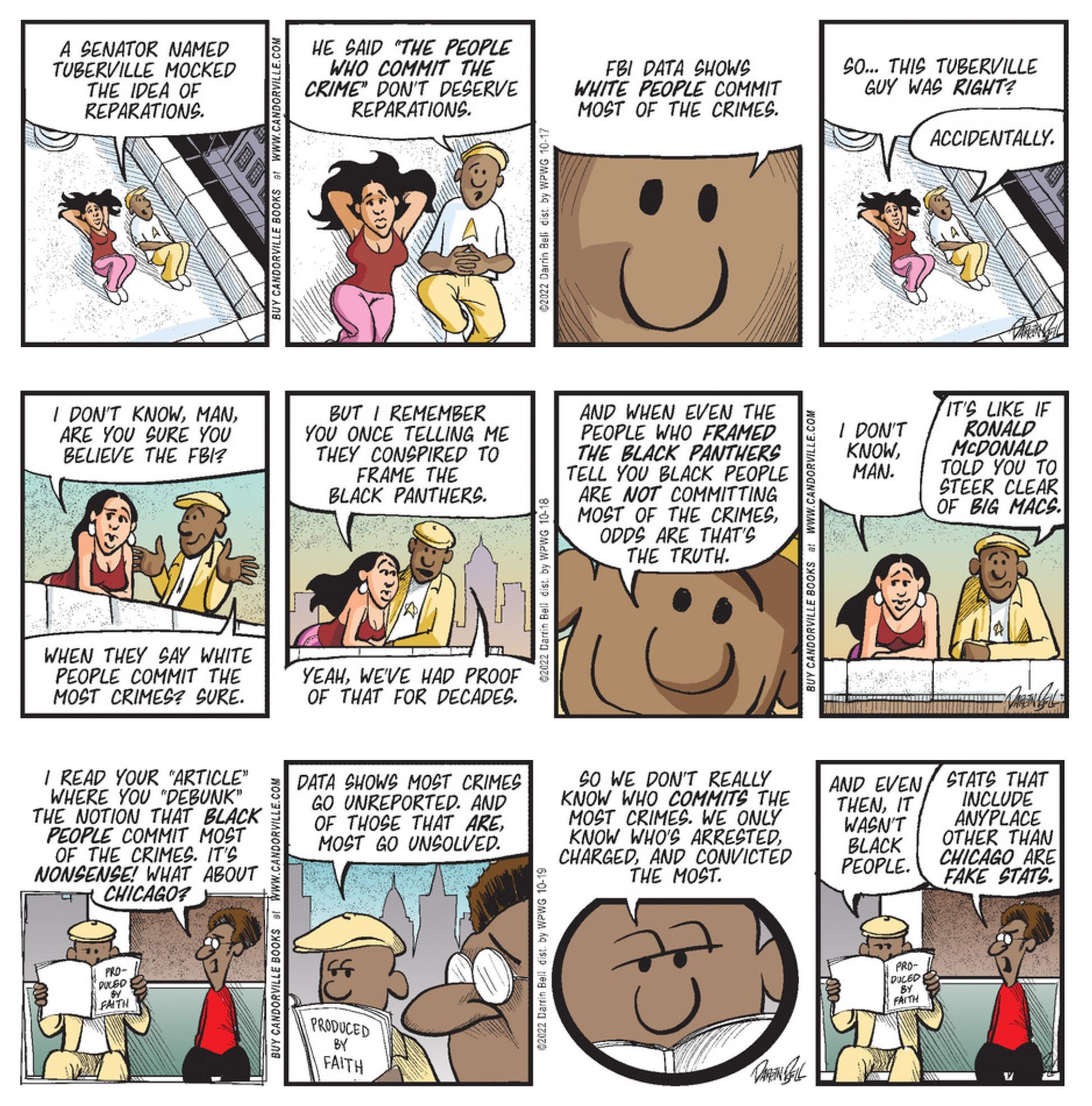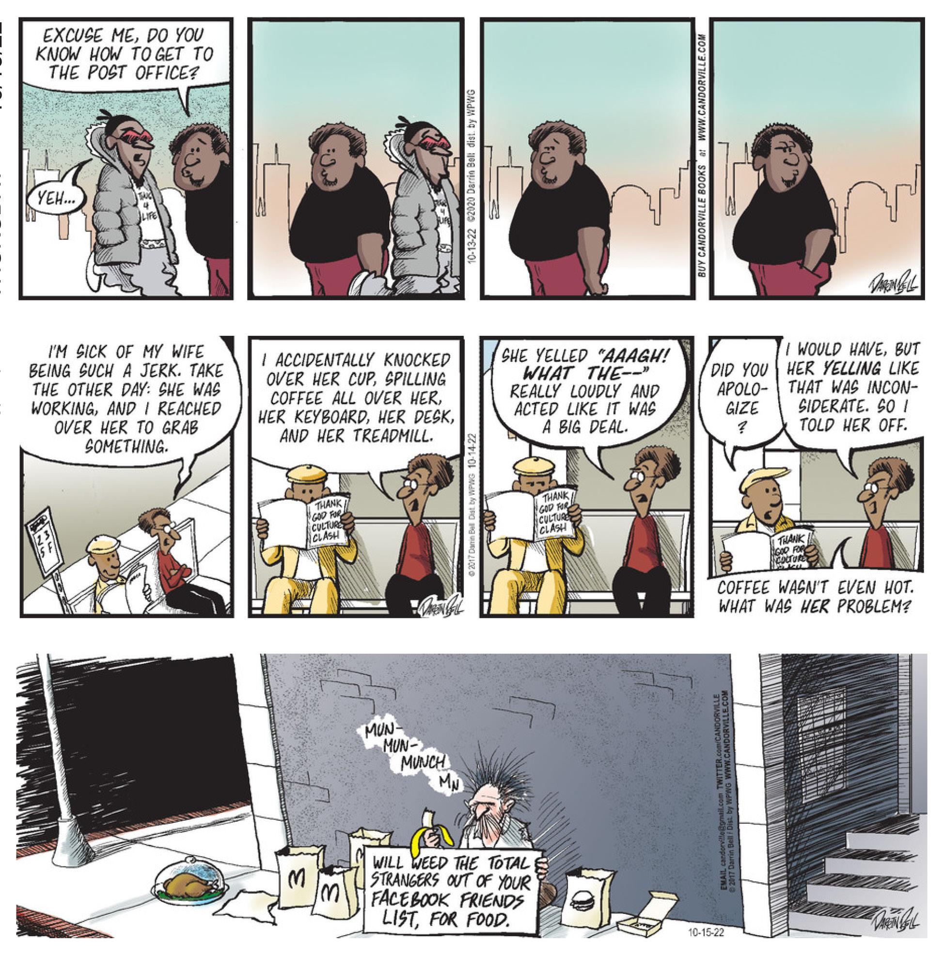 Launched in September 2003, Candorville features young black and Latino characters living in the inner city. Using the vehicle of humor, Candorville presents social and political commentary as well as the stories of its protagonists.