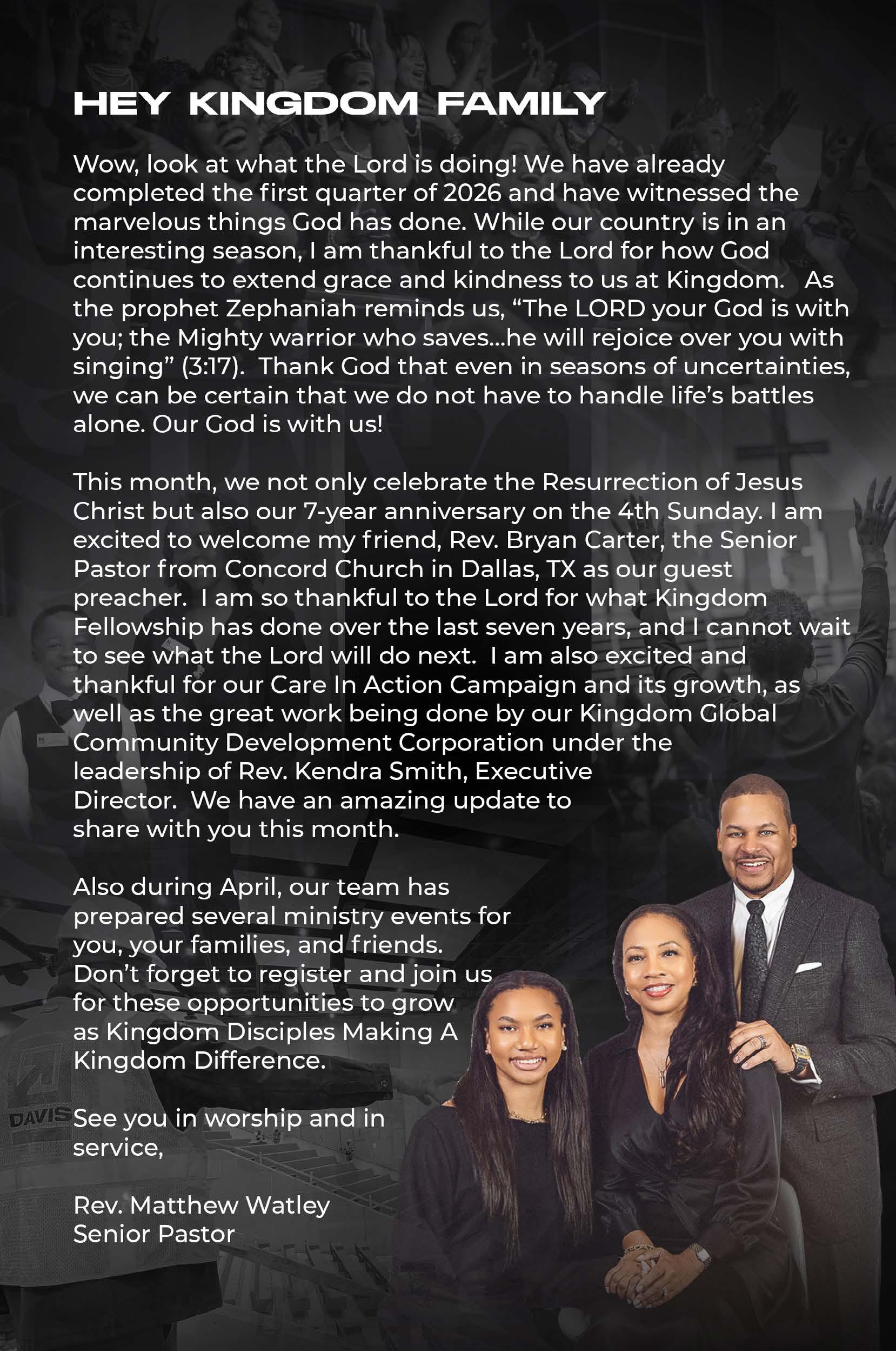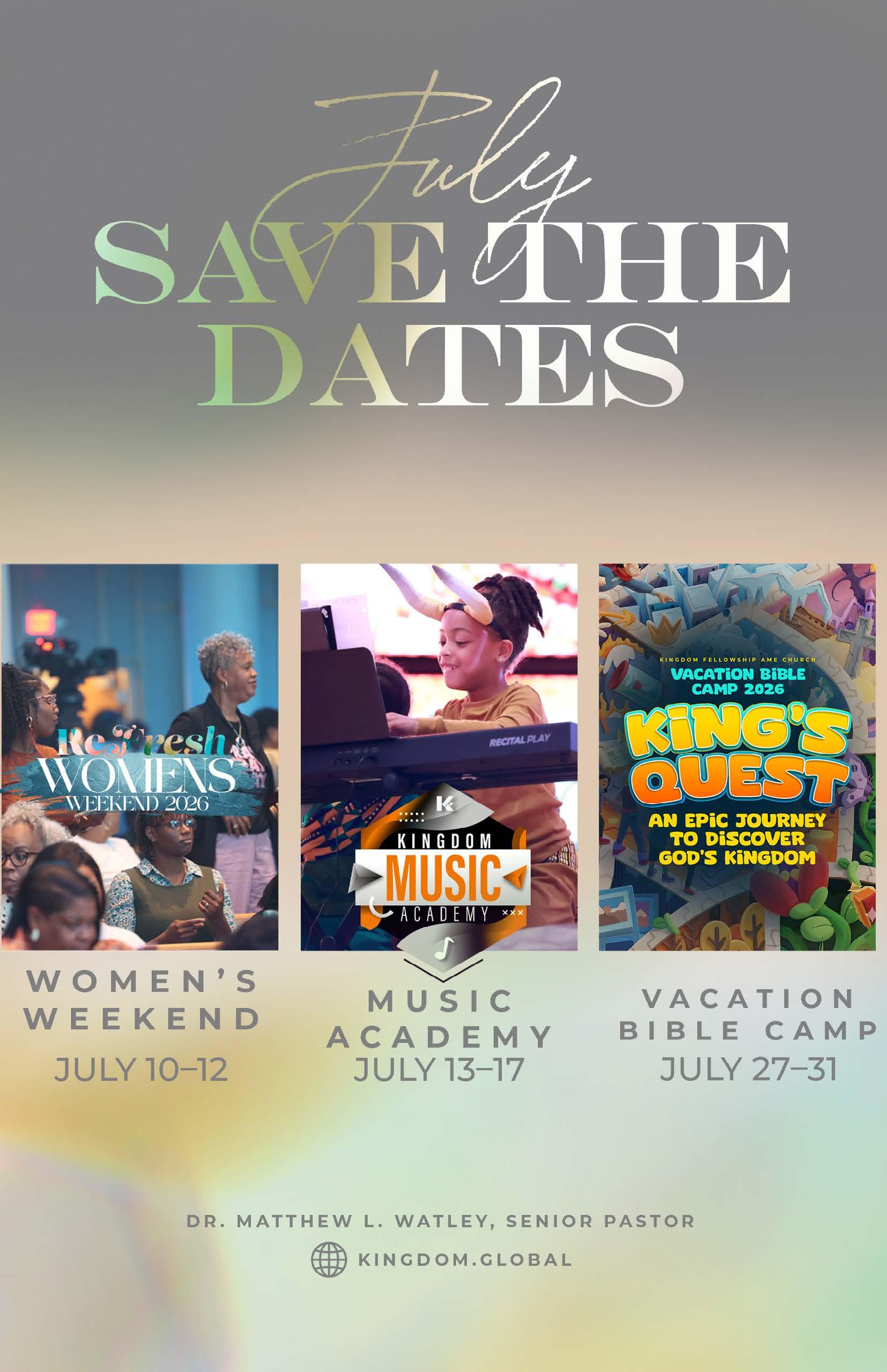 The April 2026 Gather Guide from Kingdom Fellowship AME Church is your all-in-one resource for worship, growth, and community connection this month. Inside, you’ll find sermons, Bible study details, special events, ministry highlights, and opportunities to serve—all designed to help individuals and families stay informed, engaged, and spiritually enriched throughout February.