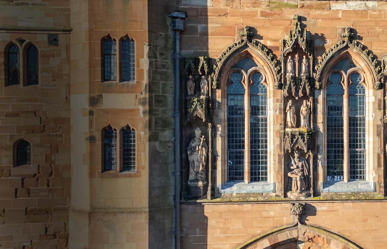 The name Edgar Tower was probably coined during one of its many restorations, in which a stonemason cut the date 975 into the wall near the state of the Saxon King Edgar (the date of the King’s death), replacing a work inscription. The name has been in use since.