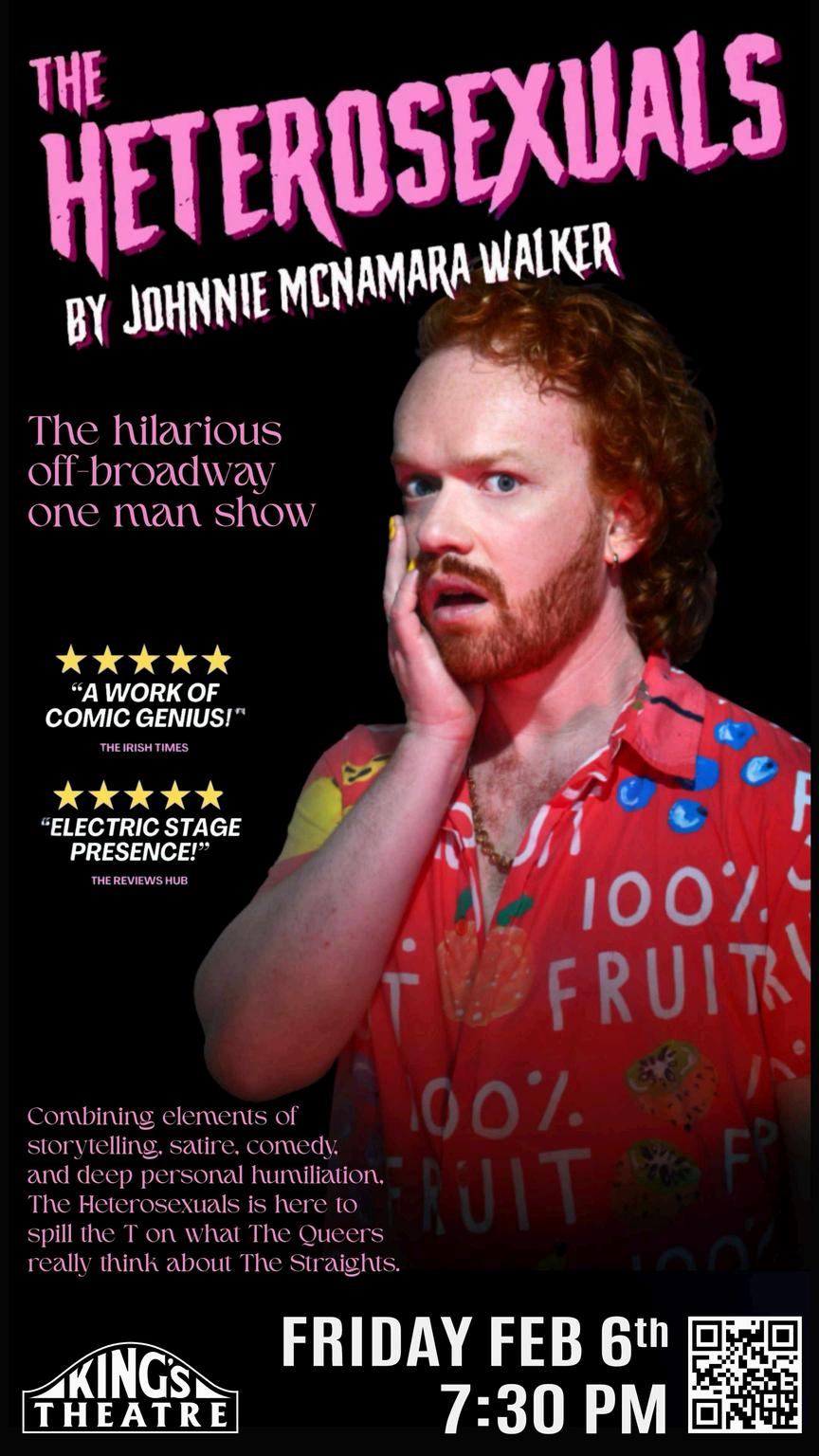 HETEROSEXUALS 2026 TOUR: THEY WALK AMONG US! But where did they come from? And what do they think they’re wearing? Find out in this explosive solo show based on undercover research gathered while posing as one of their own! Combining elements of storytelling, satire, comedy, and deep personal humiliation, The Heterosexuals is here to spill the T on what The Queers really think about The Straights. https://johnniemcnamarawalker.com