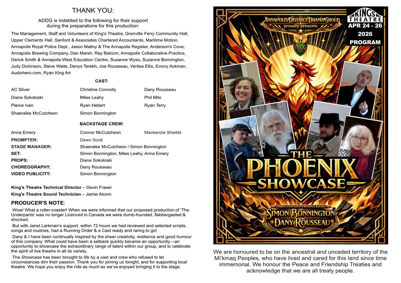 King’s Theatre is honoured to be on the ancestral and unceded territory of L’nu, also known as the Mi’kmaq Peoples, who have lived and cared for this land since time immemorial. We honour the Peace and Friendship Treaties and acknowledge that we are all treaty people.
