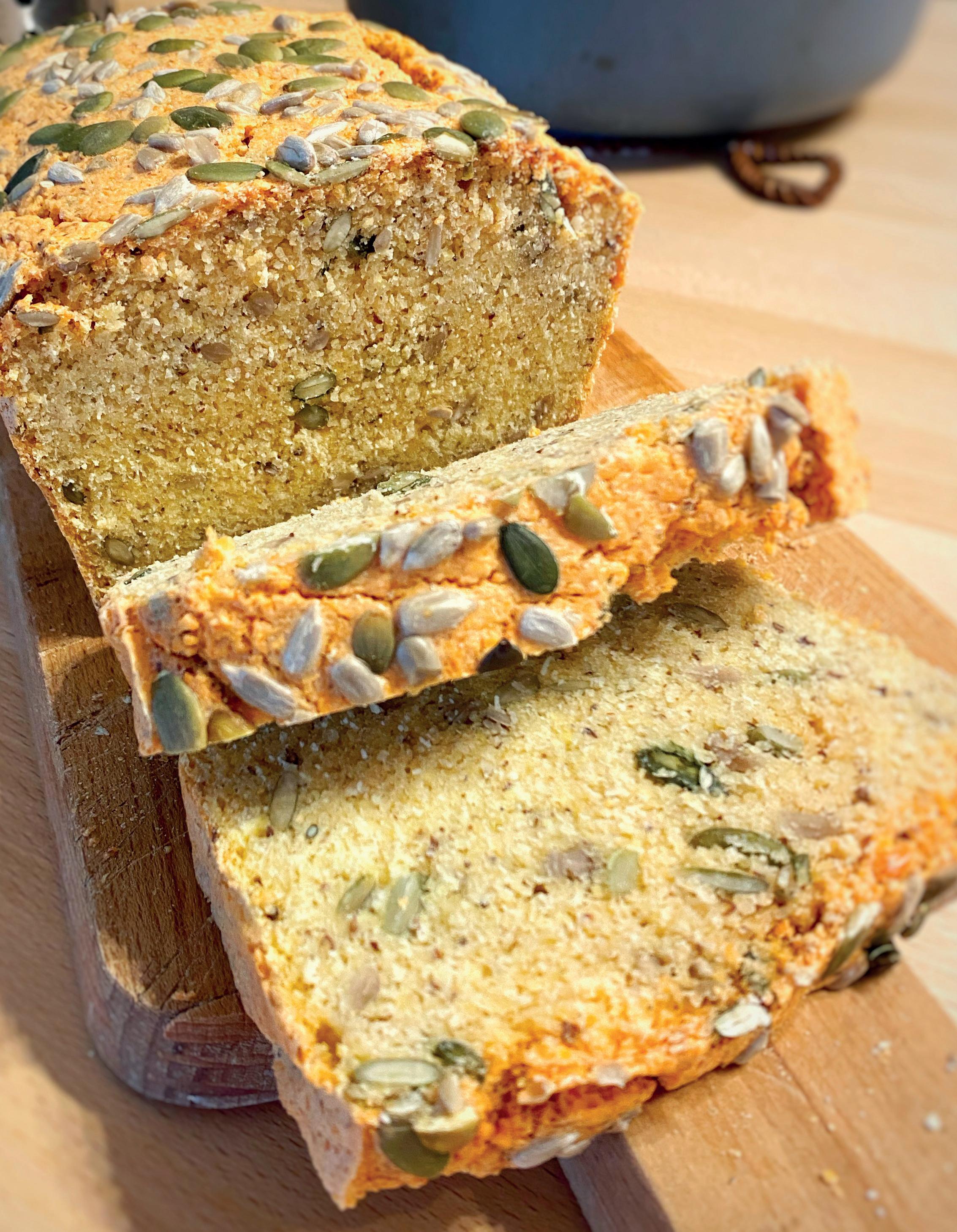 This tasty loaf is an excellent high-protein option that fills up the hungriest of tummies. Red lentils can be seen as the ‘gateway’ lentil when it comes to dealing with the side effects of pulses as they have been split and their tough outer coating removed; the skin is often the culprit for excess gas as the microbiome go wild for it. They are also much easier to cook and blend well into a gloopy bread mixture when soaked for a while.
