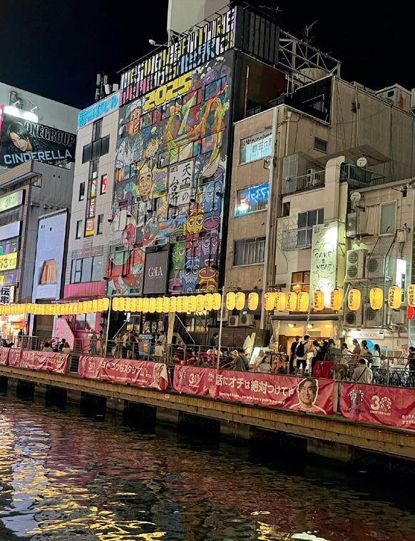 Osaka is a place that is bursting with energy. Loud colours and bright lights, very busy at all times of the day or night. Massive sculptures protrude from buildings, street performers gather large crowds on the corners, a plethora of restaurants and bars are everywhere, and the shopping options are endless. This place is always on, even the boats going along the river have loud music playing and someone on the mic.