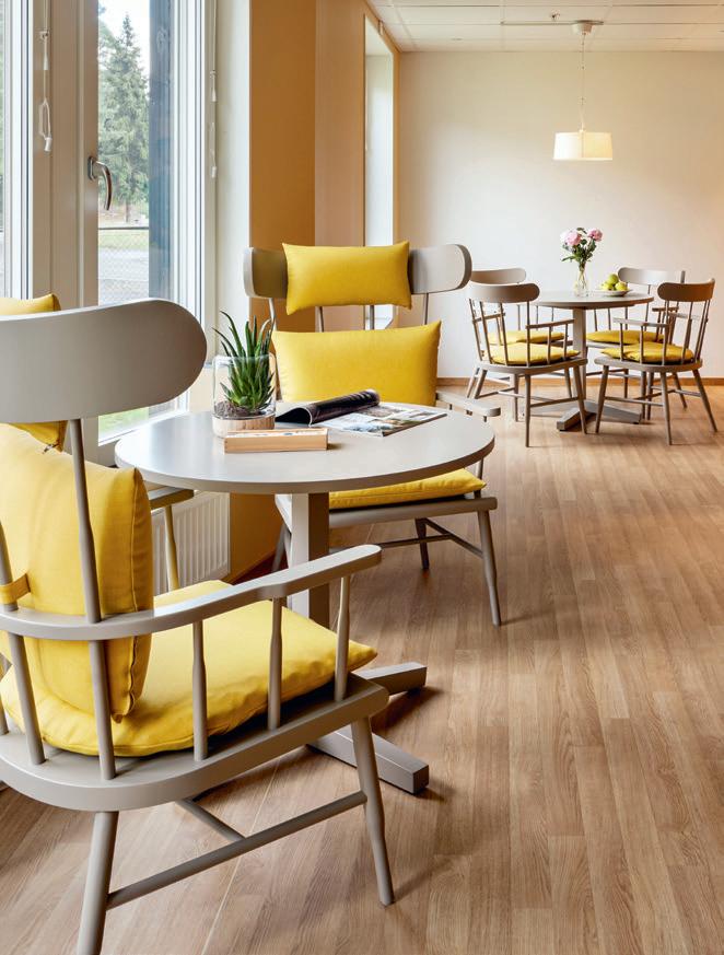 ET TRYGT MILJØ MED DE RIGTIGE MØBLER Siddemøbler, som er nemme at sætte sig i og rejse sig fra, øger selvstændigheden. Og ærlige, naturlige materialer eliminerer overraskelser og øger følelsen af harmoni og tryghed.