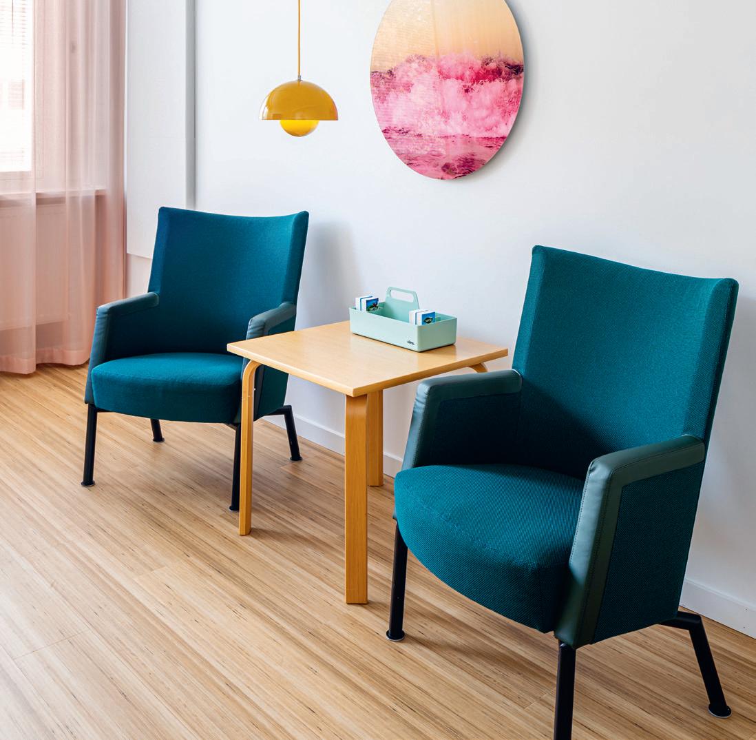 FOKUS Joustavat nojatuolit, tila tilassa -ratkaisut ja biofiilinen suunnittelu parantavat hoivaympäristöjä.