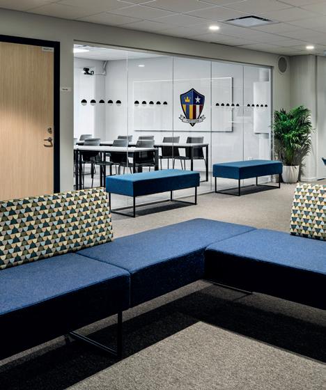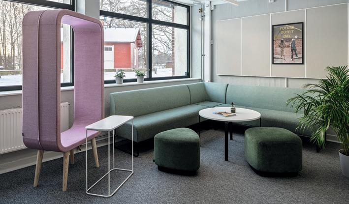 EN ANDEN BÆRENDE idé er, at læringsmiljøet skal være varieret og tilpasset forskellige aktiviteter og behov. I løbet af en skoledag opstår der mange forskellige læringssituationer, og det fysiske miljø skal understøtte undervisning, indlæring, fokus og tryghed i alle situationer. Den områdeopdeling, som Amerikanska Gymnasiet anvender, er inspireret af Kinnarps. – Jeg kom på disse idéer for længe siden, sikkert over ti år siden, da jeg var til et foredrag som Kinnarps afholdte.