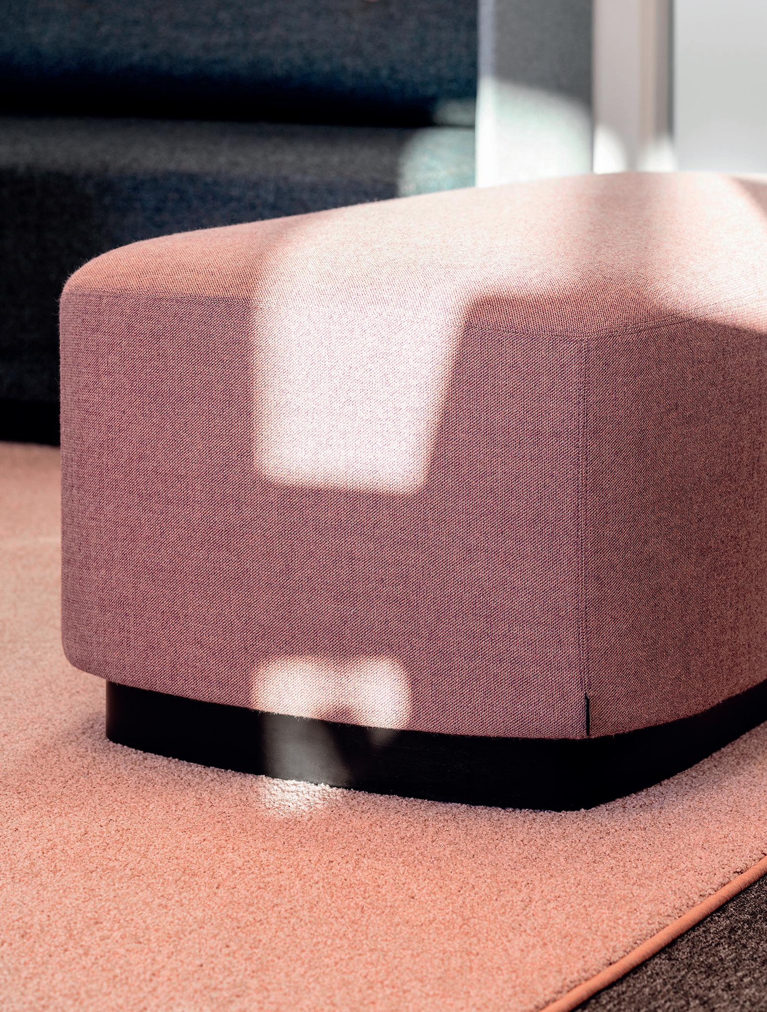 Tactile materials such as wood and textured textiles reconnect people with nature and have a positive effect on well-being. For example, solid wood and veneer are warmer to the touch than artificial materials such as plastic and laminate. On the other hand, laminate is more durable, which makes it preferable on extra hardwearing surfaces such as table tops. It is also a good idea to choose melange table tops, which are more forgiving of dirt.