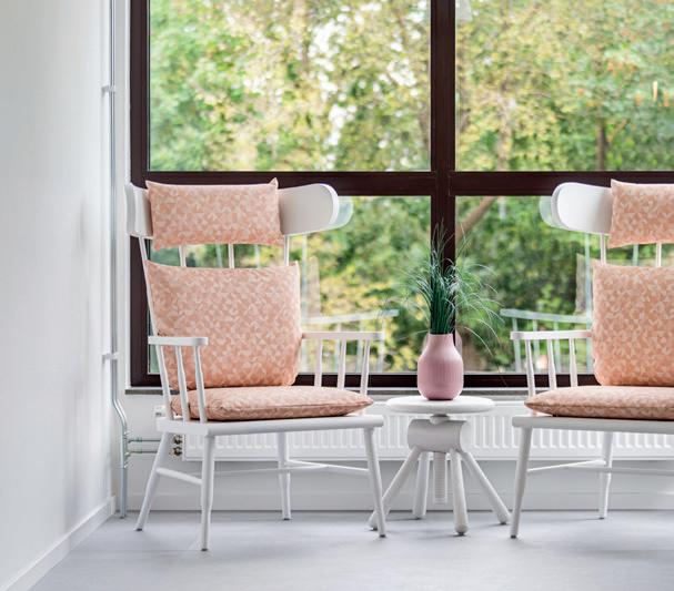 Rodzina mebli, których miękkie kształty tworzą domową atmosferę. Funkcjonalny fotel ze zdejmowanym obiciem na siedzisku i szczeliną między siedziskiem a oparciem, która zapewnia odpowiednią higienę.