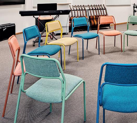 Rodzina krzeseł z możliwością sztaplowania i zawieszania na krawędzi blatu; dostępne różne modele i wysokości. Wygodne, elastyczne oparcie zniechęca do siedzenia nieruchomo.