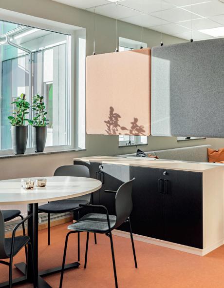 Seria wolnostojących, ściennych, sufitowych i biurkowych ścianek działowych z różnymi wykończeniami i akcesoriami takimi jak półki i haczyki. Tworzy dobre środowisko akustyczne i przytulną atmosferę.