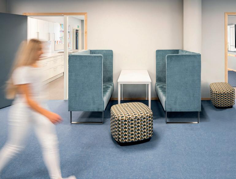 Seria sof, foteli, puf i stołów w różnych rozmiarach i wersjach. Modele z wysokimi, dźwiękochłonnymi oparciami tworzą rozwiązanie typu „pokój w pokoju”.
