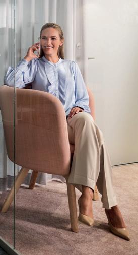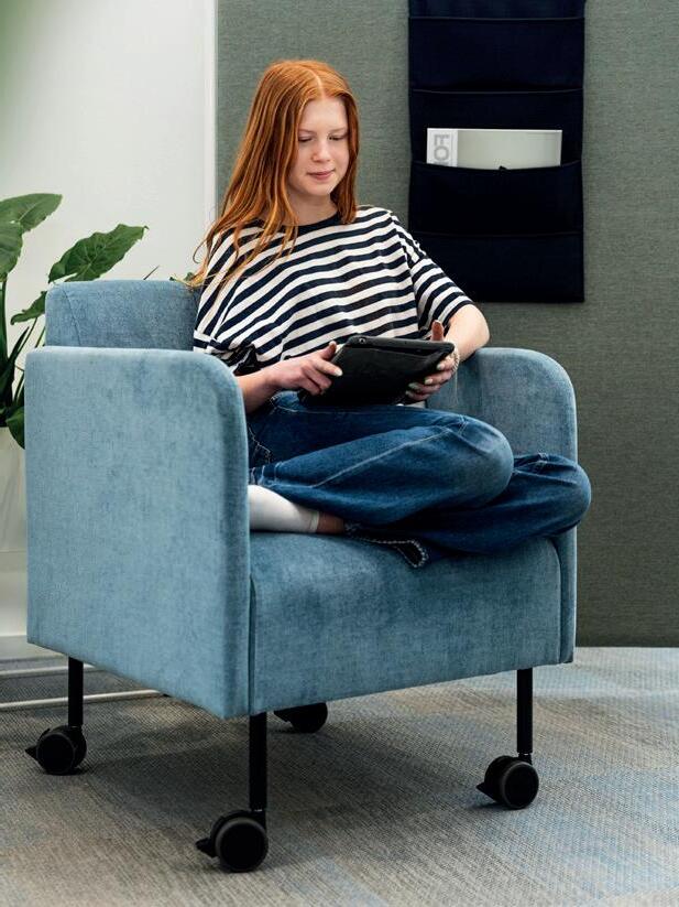 Ein Sessel mit hoher Rückenlehne, der Privatsphäre bietet, Geräusche dämpft und Ihren eigenen Raum im Raum schafft. Optional ist eine integrierte Steckdose erhältlich.