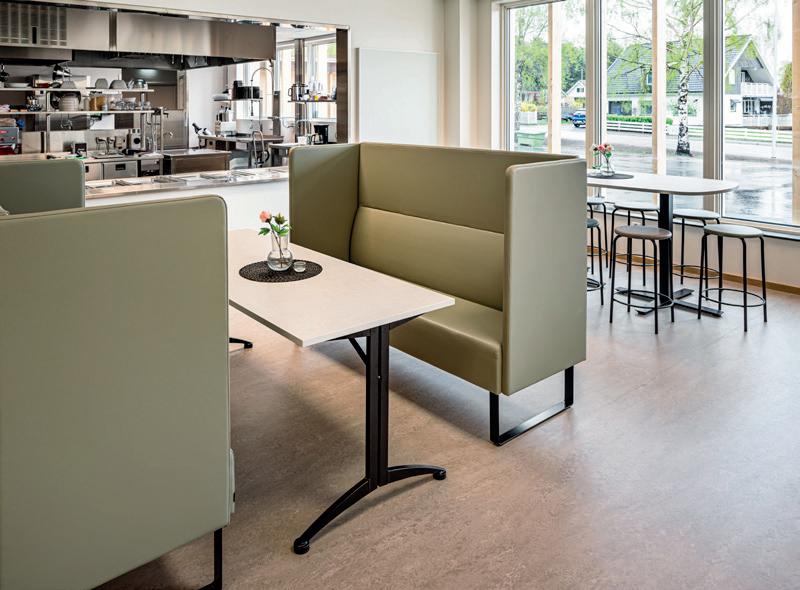 Sofas, Sessel, Hocker und Tische in verschiedenen Größen und Ausführungen. Mit hohen Rückenlehnen werden Räume im Raum geschaffen. Optional mit Steckdose im Untergestell.