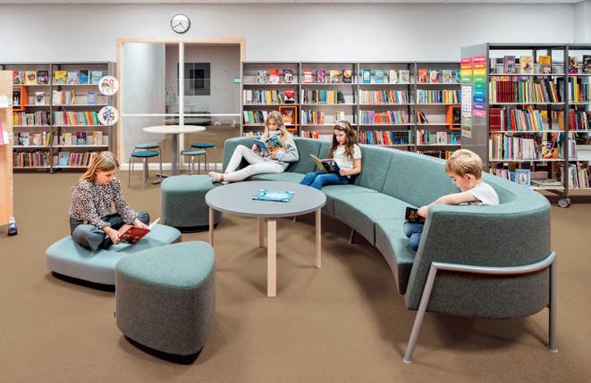 Durch die Aufteilung des Raums in klar definierte Bereiche werden verschiedene Nutzungsarten ermöglicht, z. B. ein ruhiger Bereich zum Lesen oder konzentrierten Lernen und ein aktiver Bereich, in dem die Schüler bzw. Studierende diskutieren und zusammen lernen können.
