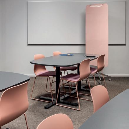 Der Gruppenraum kann als Erweiterung des Klassenzimmers fungieren. Die Einrichtung sollte hier sowohl die Gruppenarbeit als auch die konzentrierte Einzelarbeit unterstützen. Tische, die sich leicht in verschiedenen Kombinationen aufstellen lassen, Stellwände, Whiteboards und verstellbare Stühle für Unterrichtsräume bilden eine nachhaltige Grundlage. Andere Sitzmöbel können hinzugefügt werden, um verschiedene Sitzhaltungen und Erholungsphasen zu fördern.
