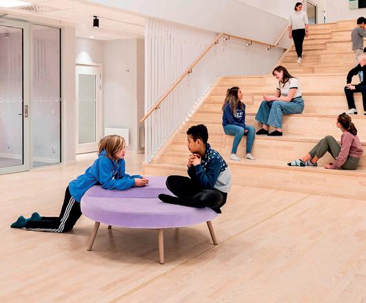 Gemeinschaftsbereiche sind große gemeinsam genutzte Bereiche, in denen sich Schüler bzw. Studierende sowie das Personal zu verschiedenen Tageszeiten treffen. Mit einer vielseitigen Einrichtung und Unterteilung in Zonen kann man einen gemütlichen und sicheren Lernraum schaffen, der zu verschiedenen Aktivitäten wie geselligem Beisammensein, Entspannung, informellem Lernen, Zusammenarbeit und individuellem Arbeiten einlädt. Verschiedene digitale Lösungen unterstützen die Nutzer mit aktuellen Informationen oder Stundenplänen.