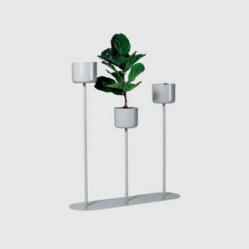 Flexible Pflanzenhalter und Raumtrennungen, die freistehend, in Gruppen oder in Reihen angeordnet werden können. So lassen sich verschiedene Bereiche und kleine grüne Oasen im Raum schaffen. Zur Auswahl stehen unterschiedliche Materialien und Farben.