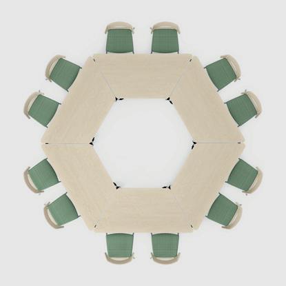 Een assortiment tafels die in veel verschillende configuraties kunnen worden gebouwd. Alles van ronde vergadertafels tot grote, rechthoekige of ovalen vergadertafels.