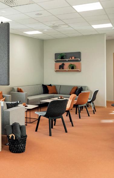 L’espace lounge complète idéalement les autres espaces de l’école. L’aménagement favorise les instants de détente, tout en créant un espace de travail temporaire.