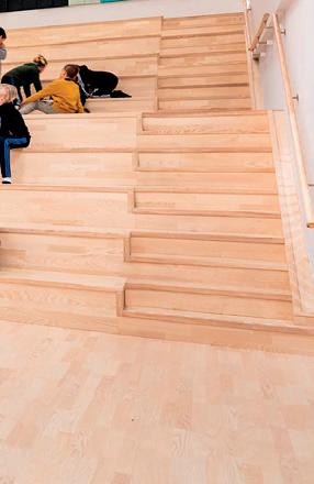L’espace créatif est un lieu où chacun peut laisser libre cours à son imagination au cours d’activités pratiques, comme créer des œuvres en textiles ou en bois, composer des musiques, explorer des technologies ou réaliser des expériences de laboratoire. Ici, l’aménagement doit soutenir la réalisation des projets et permettre de ranger facilement les affaires avant le début de la prochaine leçon. Le choix de solutions de rangement bien dimensionnées ainsi que de matériaux résistants est également important, car l’aménagement intérieur est sujet à une forte usure.