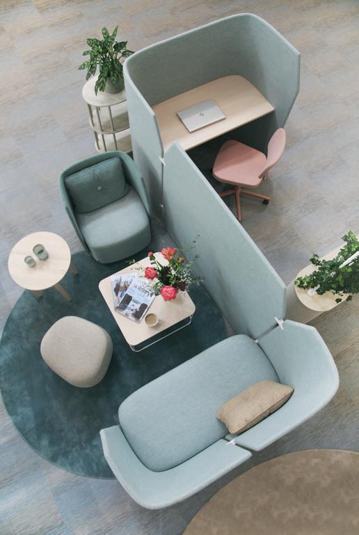 Serie med sofaer, lænestole, puffer og borde i forskellige varianter. I Fields Cove arbejder man individuelt og uforstyrret med højt fokus.