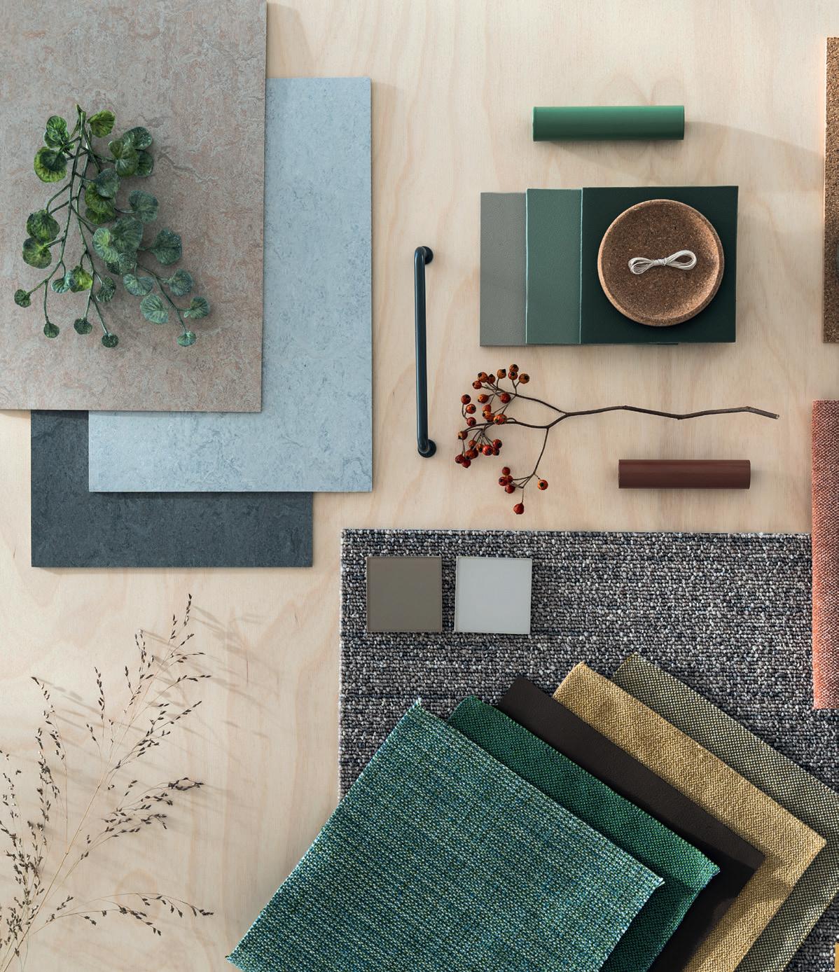 Wiele dowodów wskazuje, że kolory zbliżone do barw naturalnie występujących w przyrodzie, takie jak zielenie i barwy ziemi, mają korzystny wpływ na zdolność regeneracji. Dlatego te odcienie sprawdzają się w większości środowisk do pracy i nauki. Kolory ziemi i stonowane odcienie jednej palety barw (ton w ton) nie tylko dają poczucie spokoju, lecz także łatwo się komponują ze sobą, tworząc spójne i harmonijne wnętrza. Aby ułatwić poruszanie się po szkole i zapewnić poczucie bezpieczeństwa, warto wyznaczyć różne strefy za pomocą kolorów i kontrastów. Materiały o wyrazistej w dotyku fakturze, takie jak drewno i niektóre tkaniny, pomagają nawiązać kontakt z naturą i wpływają korzystnie na samopoczucie. Lite drewno i fornir są na przykład cieplejsze w dotyku niż sztuczne materiały, takie jak plastik i laminaty. Z drugiej strony laminaty są bardziej wytrzymałe, co jest szczególnie ważne w przypadku powierzchni narażonych na zużycie, takich jak blaty biurek. Dobrym pomysłem jest też stosowanie blatów o delikatnym marmurkowym deseniu, ponieważ zabrudzenia są na nich mniej widoczne.
