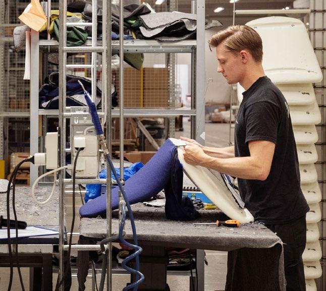 Vi är stolta över vår svenska produktion som uppfyller höga miljökrav och skapar arbetstillfällen med goda villkor. Våra fabriker drivs i hög utsträckning med fossilfri energi och vi investerar kontinuerligt för att utveckla våra anläggningar. Vårt unika logistiksystem är ett exempel på hur vi förenar hållbarhet med smarta lösningar för våra kunder. Genom att använda filtar istället för engångskartonger kan vi transportera fler möbler per lastbil vilket innebär färre transporter och lägre klimatpåverkan. Dessutom innebär detta sätt att packa möblerna att vi kan installera dem på halva tiden jämfört med branschsnittet och på så vis minimera påverkan på kundens verksamhet. Att vi har så stor del av kedjan i egen regi, från komponenttillverkning till leverans och efterföljande tjänster, skapar en försörjningstrygghet som stärker vår förmåga att leverera pålitliga lösningar till våra kunder.