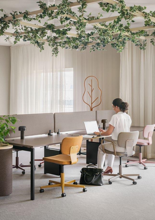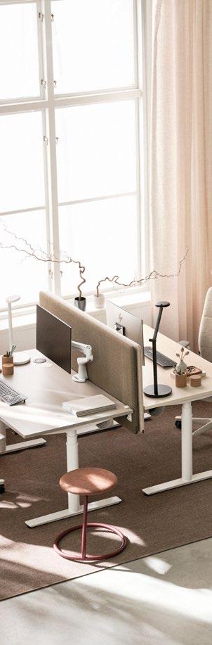Ergonomi är en central del av vår strategi för hållbara arbetsmiljöer. Vi ser det ur ett helhetsperspektiv där möbler, rumslig utformning och funktion samspelar med faktorer som ljus, ljud, rörelse och sociala sammanhang. Vår roll är att hjälpa våra kunder att skapa miljöer som tar hänsyn till alla dessa aspekter och där alla människor får rätt förutsättningar att må bra och prestera.
