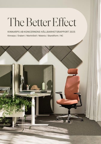 Kinnarps AB-koncernen är en av Europas ledande helhetsleverantörer av inredningslösningar för kontor, utbildning och omsorg. Kinnarps helhetserbjudande omfattar behovsanalys, inredningsdesign, implementering och uppföljning. Vi hjälper våra kunder att skapa hållbara och framtidssäkrade miljöer med hjälp av vår egen varumärkesportfölj, ett brett utbud av tjänster samt kompletterande partners. Vår nyfikenhet och intresse för hållbara lösningar gör att vi ständigt arbetar för att minska klimatavtryck, öka välbefinnande och skapa miljöer som håller över tid. I den här hållbarhetsrapporten fokuserar vi på sex viktiga områden där vi i koncernen, tillsammans med våra kunder och leverantörer, bidrar till att skapa bättre effekt för generationer framåt.