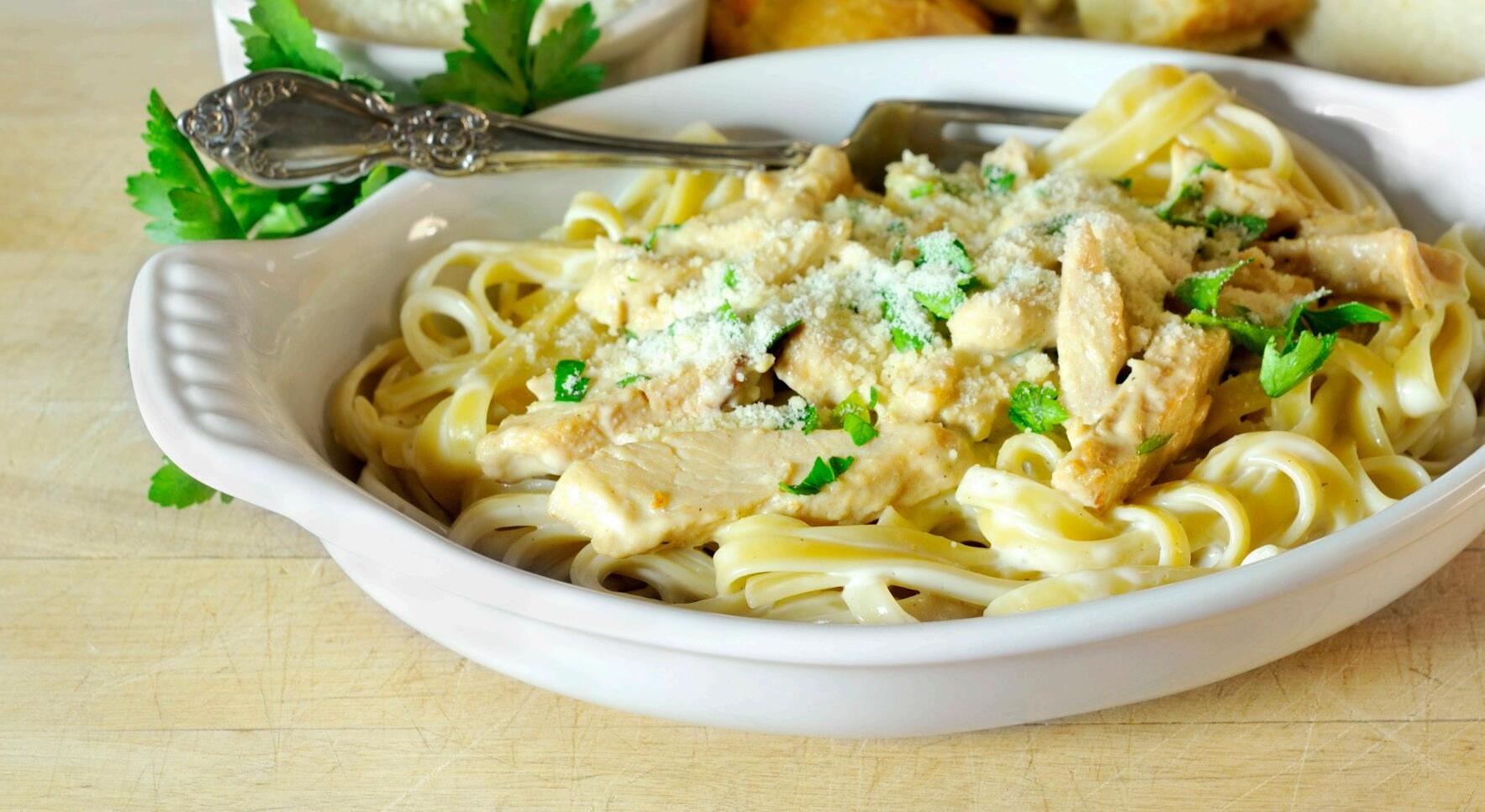 Baked Cheese Ravioli with Marinara Sauce • Chicken Fettuccini Alfredo