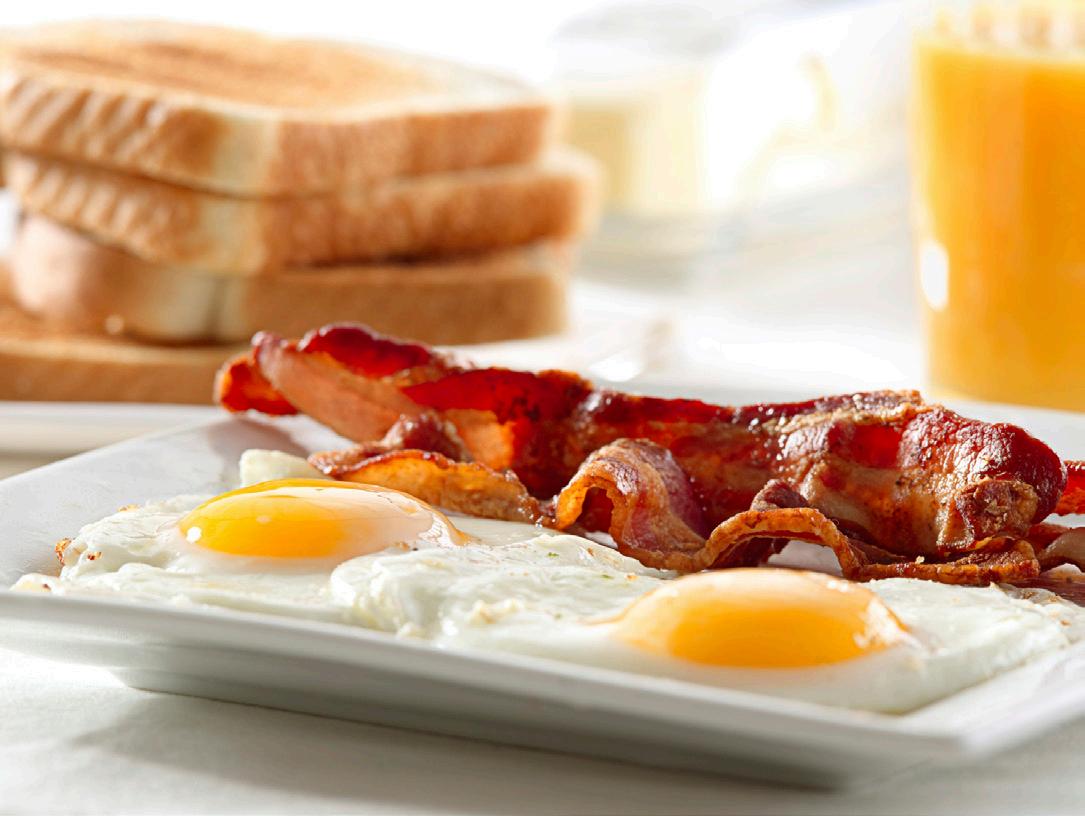 CHOOSE TWO MEATS: Smokehouse bacon • Sausage • Ham • Baked chicken