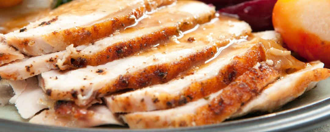 ROAST TURKEY - Whole roasted turkeys, carved and offered with a Wild Berry demi-glaze.
