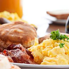 Freshly Scrambled Eggs and a generous helping of Breakfast Potatoes with choice of Sausage, Bacon or Ham Steak . Substitute 4 oz . Sirloin for an additional price per guest . $11 .00