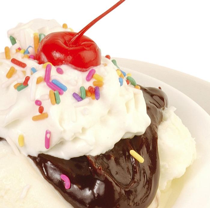 Buffet of Vanilla and Chocolate Ice Cream, Whipped Topping, Nuts, Sprinkles, Chocolate Sauce, Caramel Sauces, and Maraschino Cherries . $6 .00